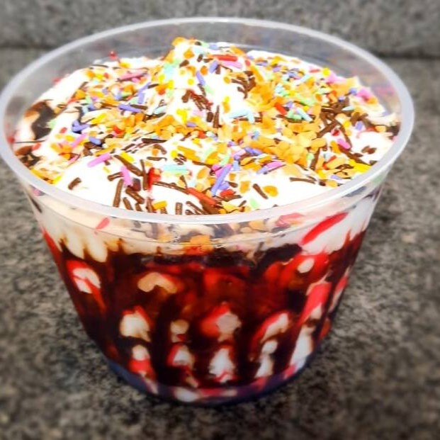 Agora temos essa novidade sorvete com cobertura e adicionais gratuitos a sua escolha (tudo ja junto no pote de sorvete)Sabores Creme ( Sorvete de baunilha) ou Misto ( Sorvete de baunilha com Chocolate).