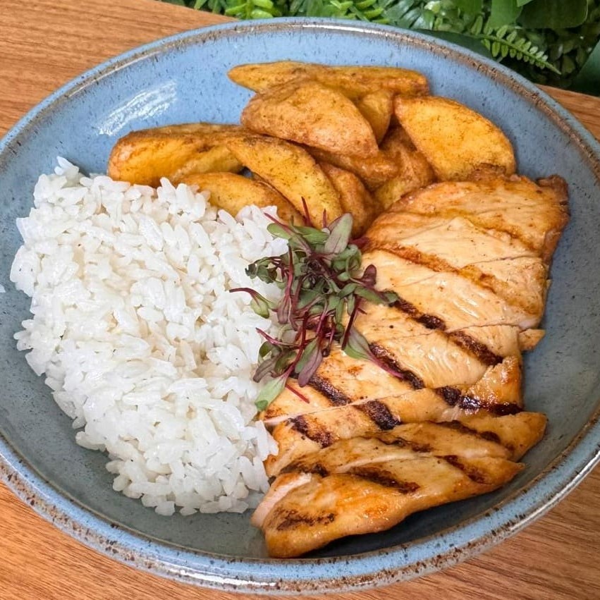 Frango Grelhado + Fritas Rústicas E Arroz Branco