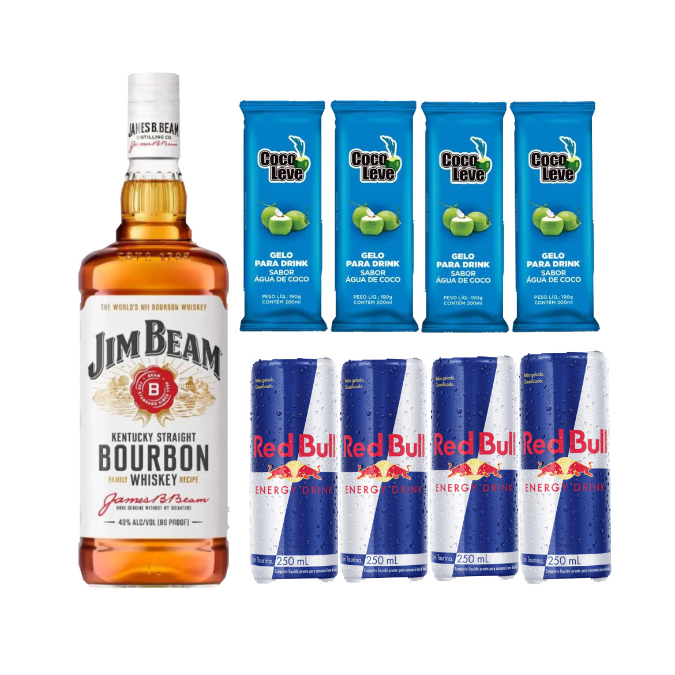 Acompanha 4 copos 700ml e 4 canudos. Colocar na observação se quiser outro sabor de gelo e redbull, senão será enviado como na foto.