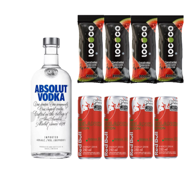 Acompanha 4 copos 700ml e 4 canudos. Colocar na observação se quiser outro sabor de gelo e redbull, conforme disponíveis no cardápio.