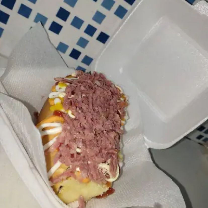 Pão salsicha sadia frango desfiado calabresa ralada bacon milho batata palha purê cheddar catupiry ketchup mostarda maionese