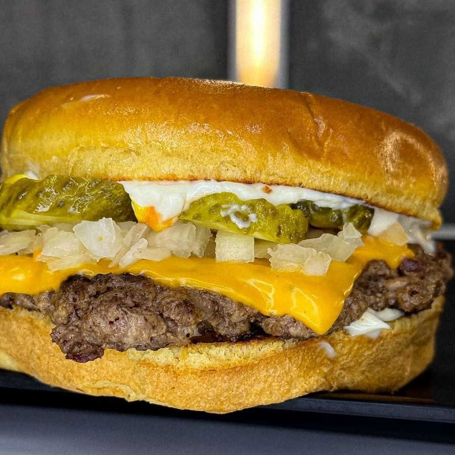 Pão, Dois Burger Smash Artesanal, queijo cheddar fatiado, Cebola caramelizada e Maionese Especial.