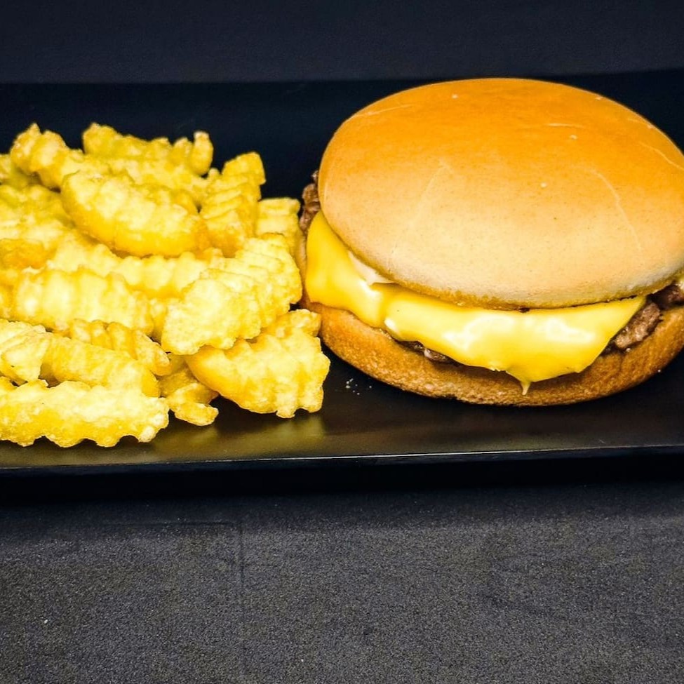 Br Queijo - Pão, burger smash de 110 grs, queijo prato fatiado e maionese especial; Batata crinkles c/ páprica de 200g; Refri de 350ml;
