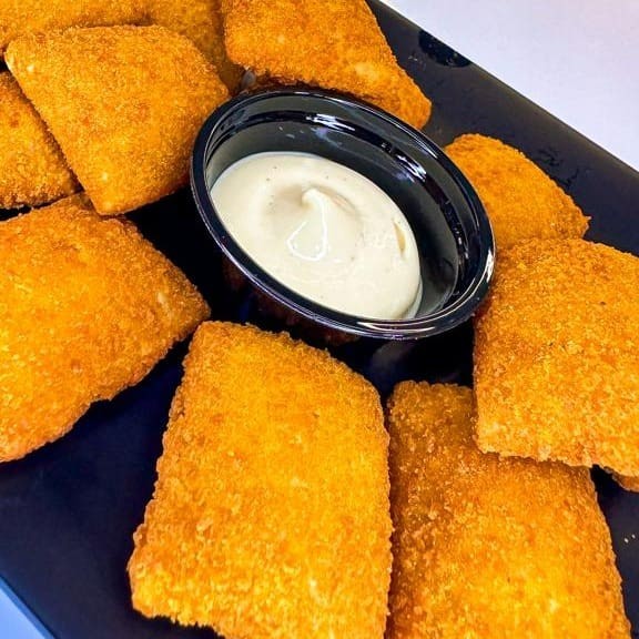 Porção de almofadinhas de queijo gouda - 12 unidades Acompanhado de maionese da casa.