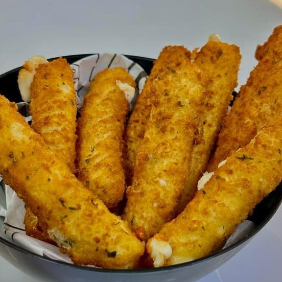 Palitinhos de mussarela empanada super crocante. 12 unidades.