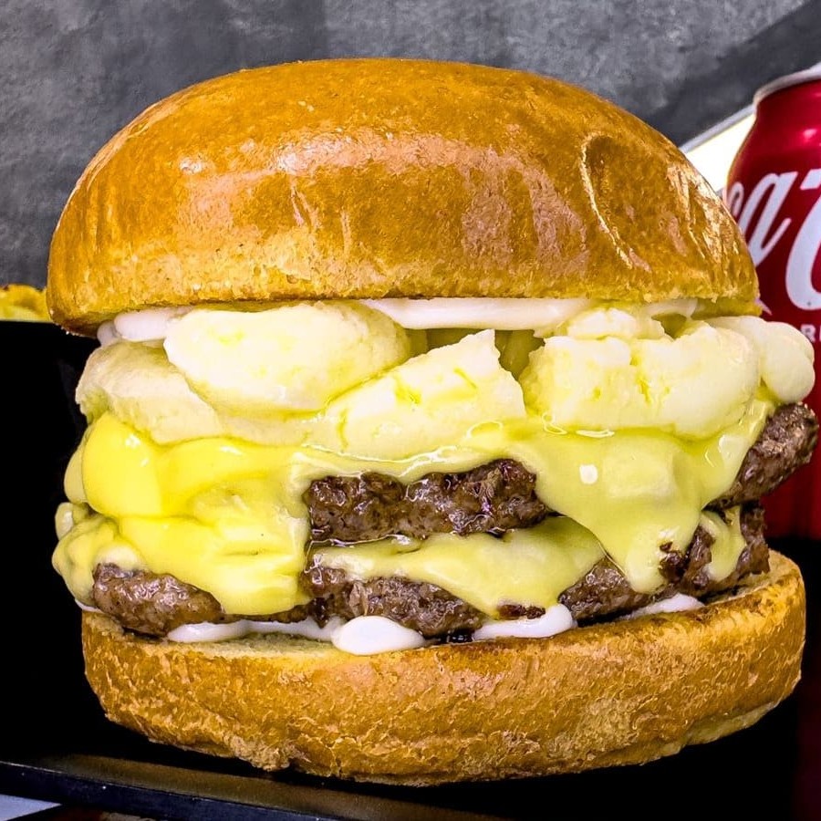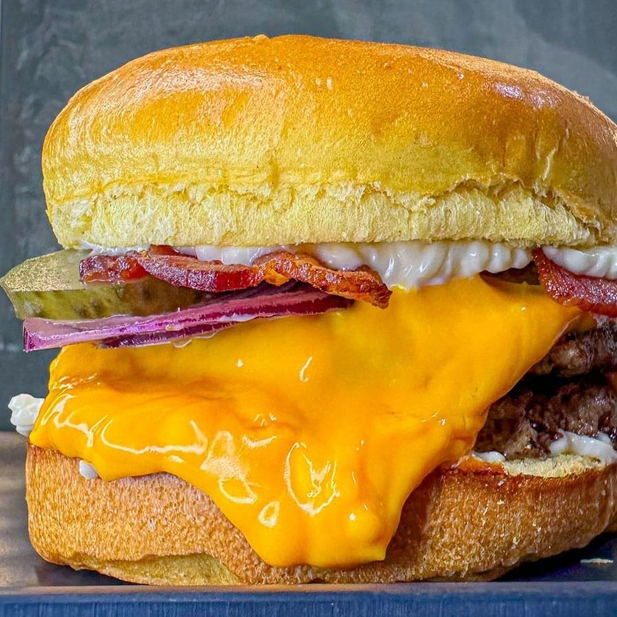 Pão, Burger Smash Artesanal, Delicioso Cheddar Cremoso, Cebola Caramelizada, Tiras de Bacon Crocante e Maionese Especial.
