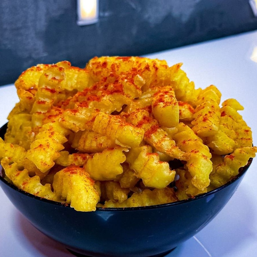 Batata Crinkles Individual c/ páprica - pequena 200 gr Acompanha maionese da casa.