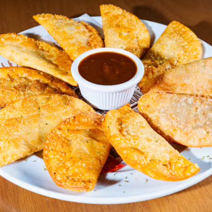 Receita exclusiva! Saborosa porção com 5 pasteizinhos recheados com costelinha desfiada, regada ao molho Barbecue e Cheddar Cremoso. Acompanha molho Barbecue.
