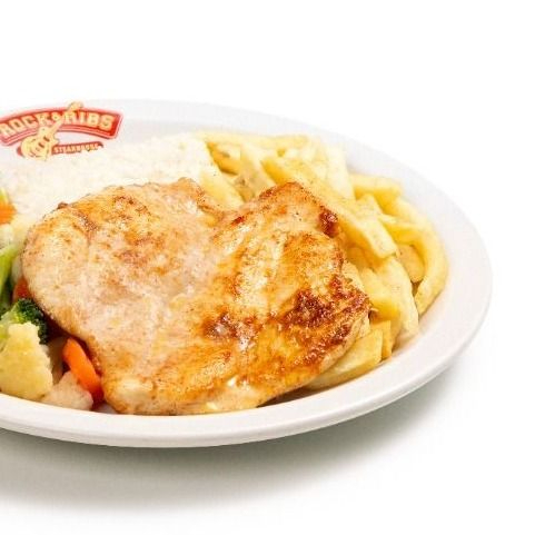 Filé de frango grelhado. Acompanhado de arroz, feijão, farofa e nossa exclusiva batata Chips!
