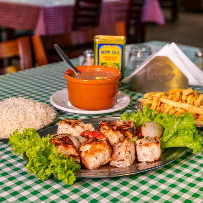 Nosso espeto de Linguiça de Pernil, da categoria Churrascos, é uma verdadeira delícia gastronômica. A harmonia perfeita do suculento pernil suíno, cuidadosamente temperado, traz um sabor inconfundível à linguiça. Acompanhado por arroz branco, leve e soltinho, feijão carioca bem temperado e batatas fritas crocantes por fora e macias por dentro, é uma refeição que agrada todos os paladares. Ideal para compartilhar, pois serve de 2 pessoas, é a escolha perfeita para um almoço ou jantar em boa companhia.