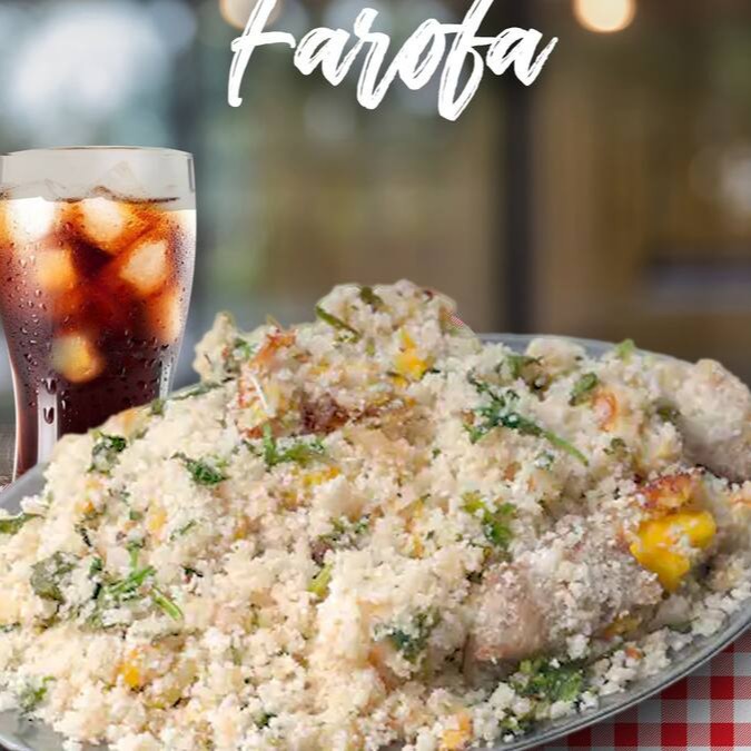 Deliciosa farofa feita com farinha de mandioca, cebola, ovos, azeitona, salsa e torresmo