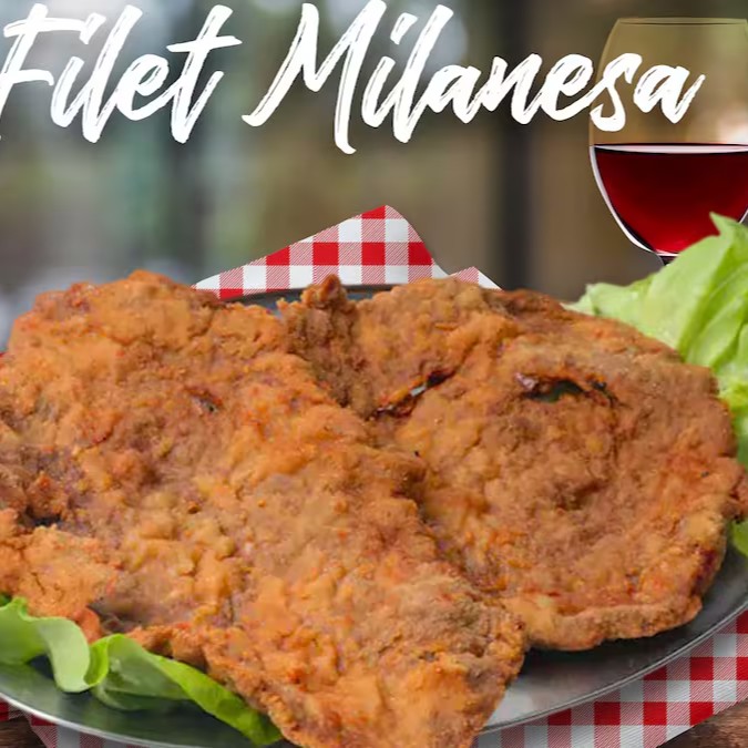 Filet mignon à milanesa, coberto com molho ao sugo, queijo mozzarella, parmesão e ervilha. Acompanha polenta ou farofa.