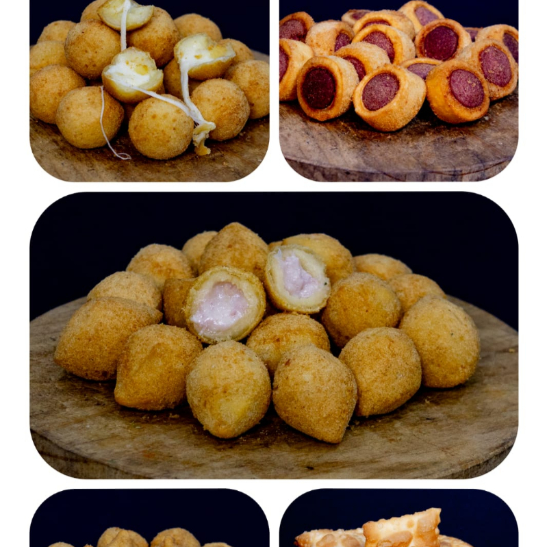 Acompanha: Coxinha de Frango, Bolinho de Queijo, e risole de presunto e queijo ( enroladinho de salsicha so mandamos quando solicitado na observação)