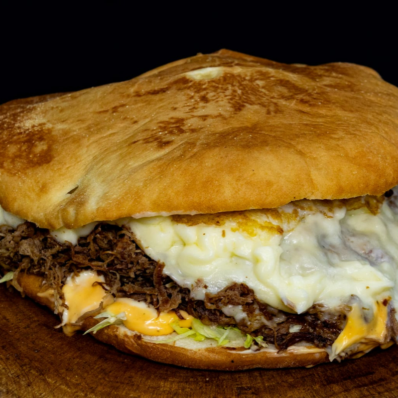 Alface, tomate, maionese, molho billy jack, picanha, ovo, cheddar e mussarela