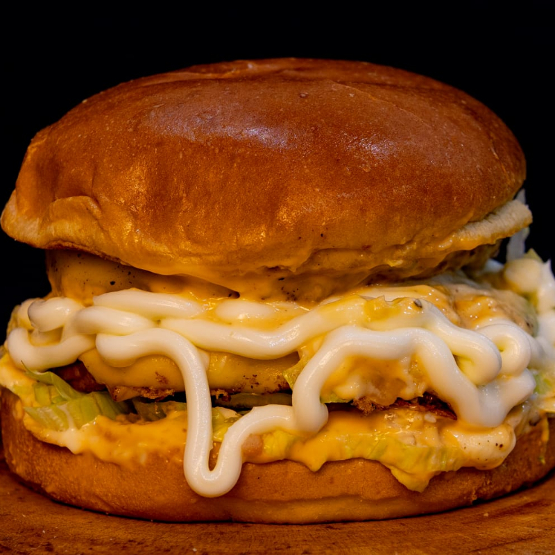 Pão de hamburguer, alface, tomate, maionese, molho billy jack, hamburguer, catupiry e mussarela