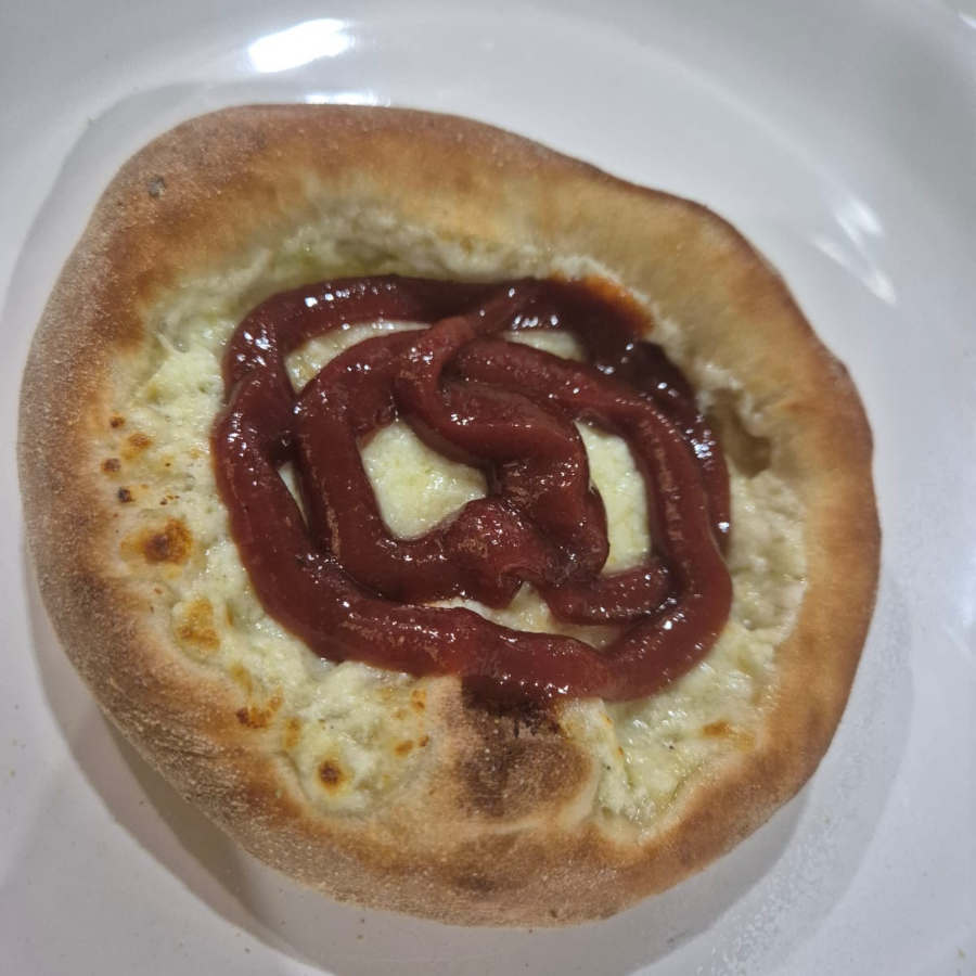 Molho de tomate, frango desfiado, catupiry, oregano e azeitonas