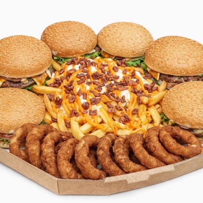 Escolha 06 lanches: x-burguer, x-salada ou x-bacon + porção de batata (Na batata vem: ketchup, maionese, mostarda, cheddar e queijo ralado) e acompanhado na caixa de pizza comum