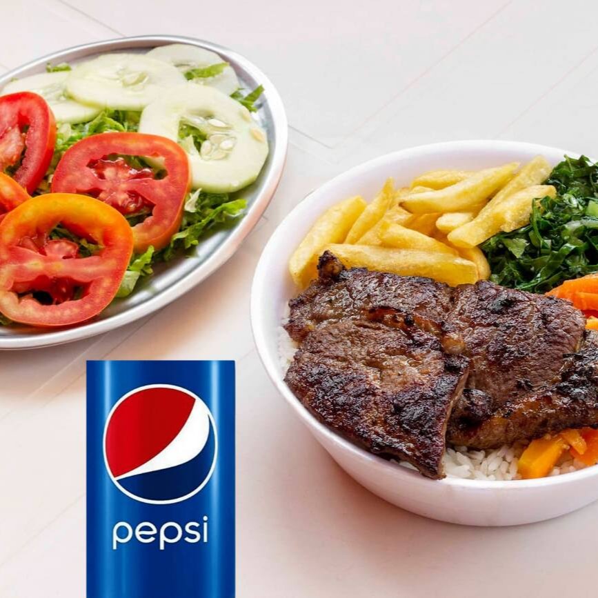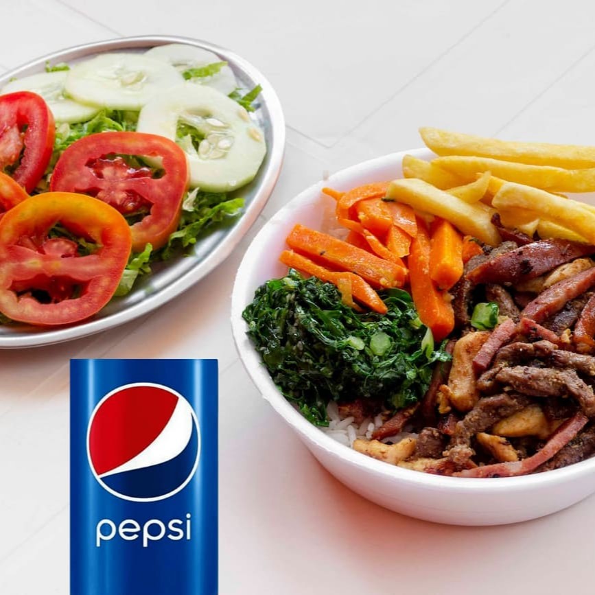 Uma mistura deliciosa de carnes grelhadas acompanhadas de arroz branco, feijão carioca e mais 2 adicionais a sua escolha com uma Pepsi gelada. #almoço #refeição #marmita #marmitex #Pepsi