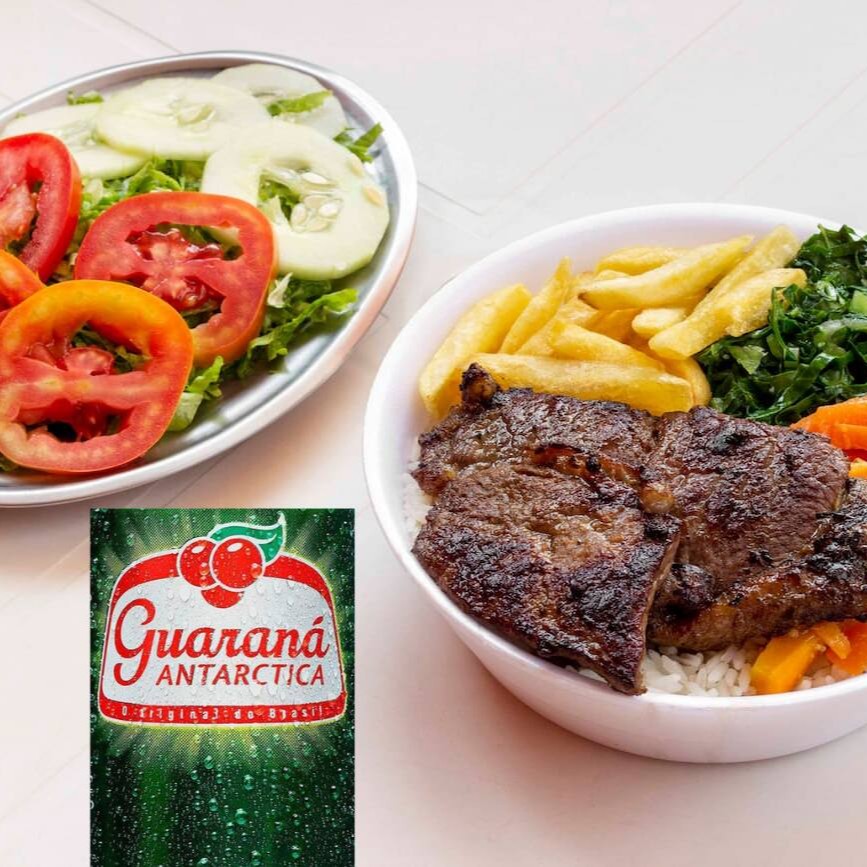 Aquele Contra Filé delicioso e bem grelhado na chapa acompanhado de arroz branco, feijão carioca e mais 2 adicionais a sua escolha com um Guaraná Antarctica gelada. #almoço #refeição #marmita #marmitex
