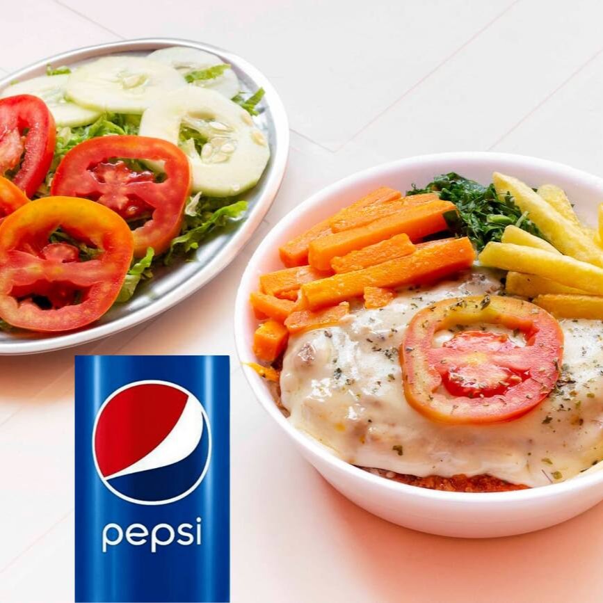 Escolha a parmegiana que você mais gosta coberta por queijo mussarela e molho de tomate deliciosos, acompanhada de arroz branco, feijão carioca e mais 2 adicionais a sua escolha com uma Pepsi gelada. #almoço #refeição #marmita #marmitex