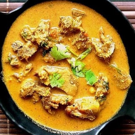 1. Cubos de carneiro preparado sem molho rico e cremoso de coco. 2. Arroz Basmati (uma porçao) 3. Butter Naan (Pao de farinha de trigo com manteiga )