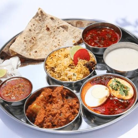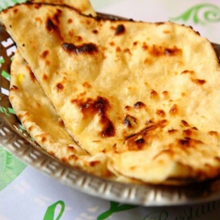 1.Cubos de frango e batatas cozidas em um molho cremoso de espinafre e especiarias 2. Arroz Basmati (uma porçao) 3. Butter Naan (Pao de farinha de trigo com manteiga )