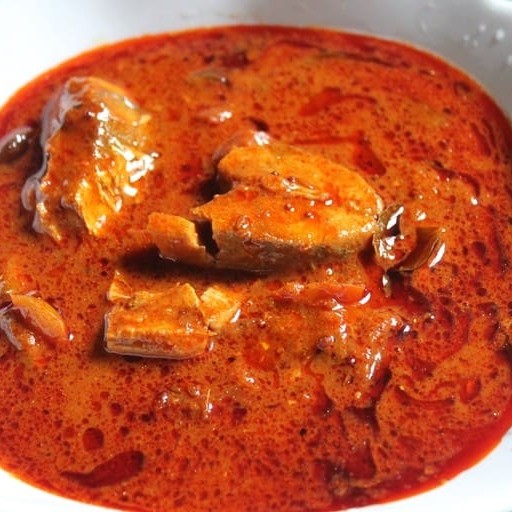 Cubos de peixe preparados em um molho rico e cremoso de coco