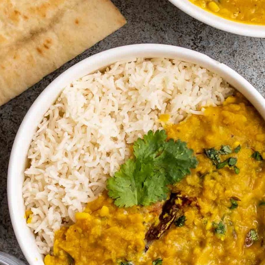 1. Lentilhas prepadas em um rico molho de tomate, cebola e especiarias 2. Arroz Basmati (uma pote) 250ml 3. Butter Naan (Pao de farinha de trigo servido com manteiga)