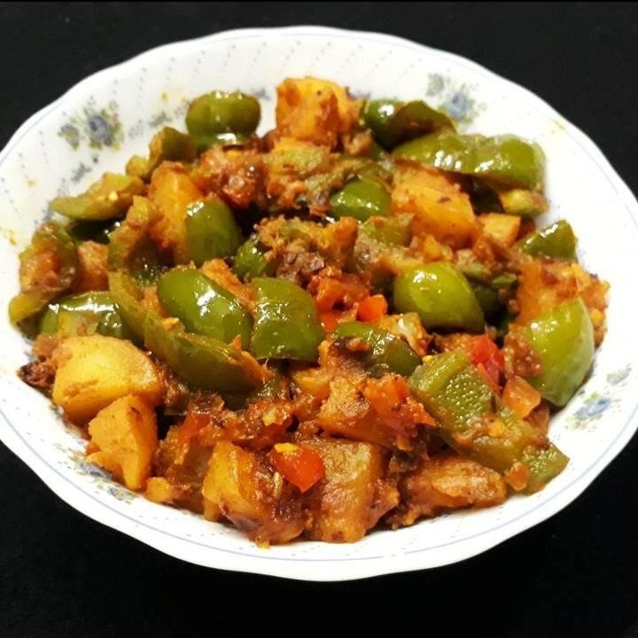 Cubos temperados com uma combinação de especiarias preparados com cebola e tomate