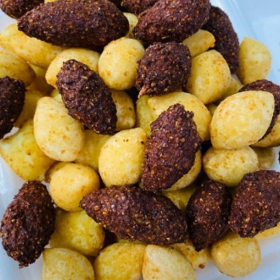 Coxinha, Bolinho de queijo, calabresa, carne, presento e queijo