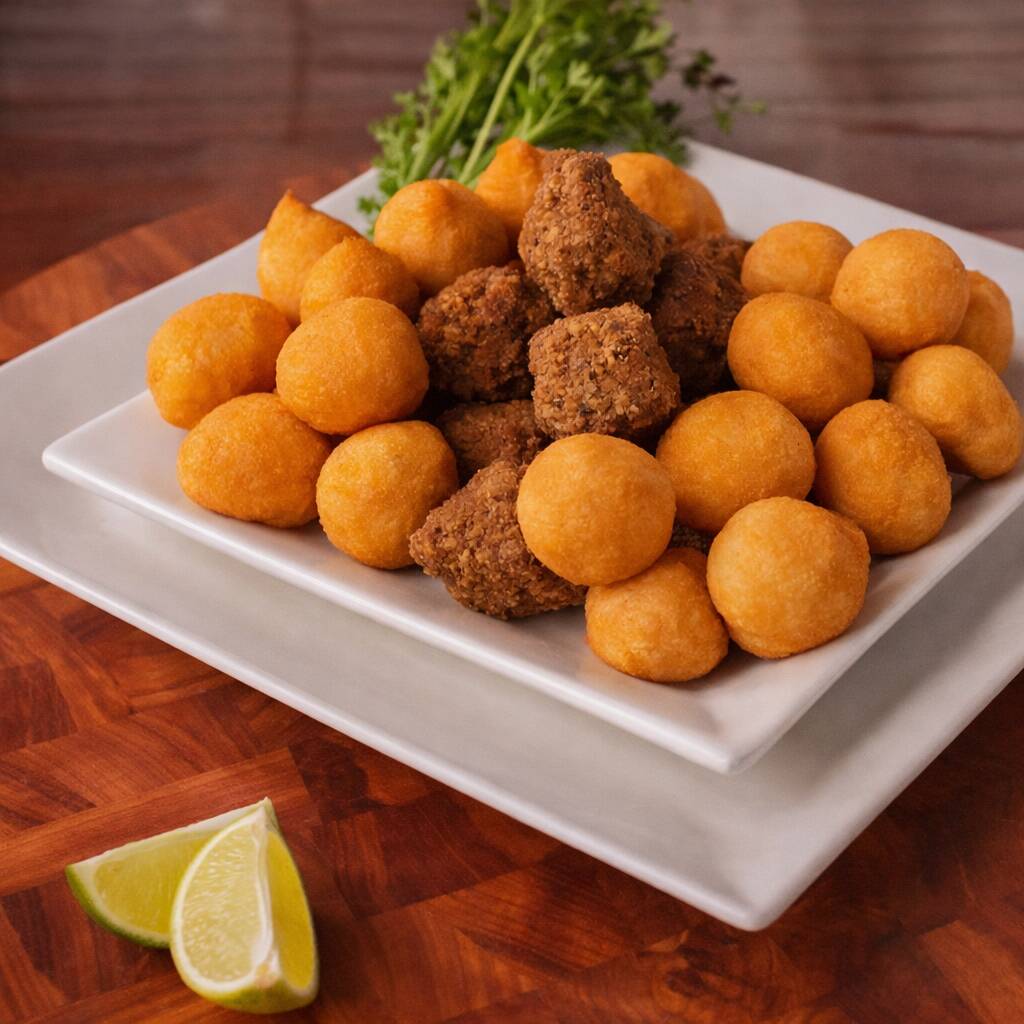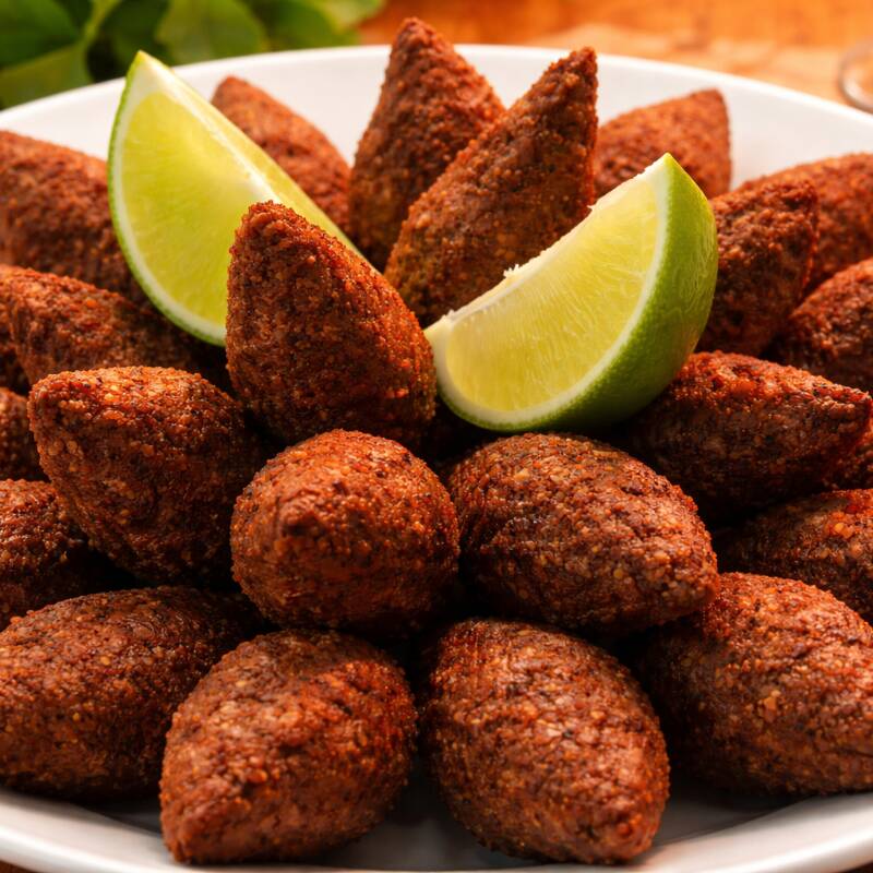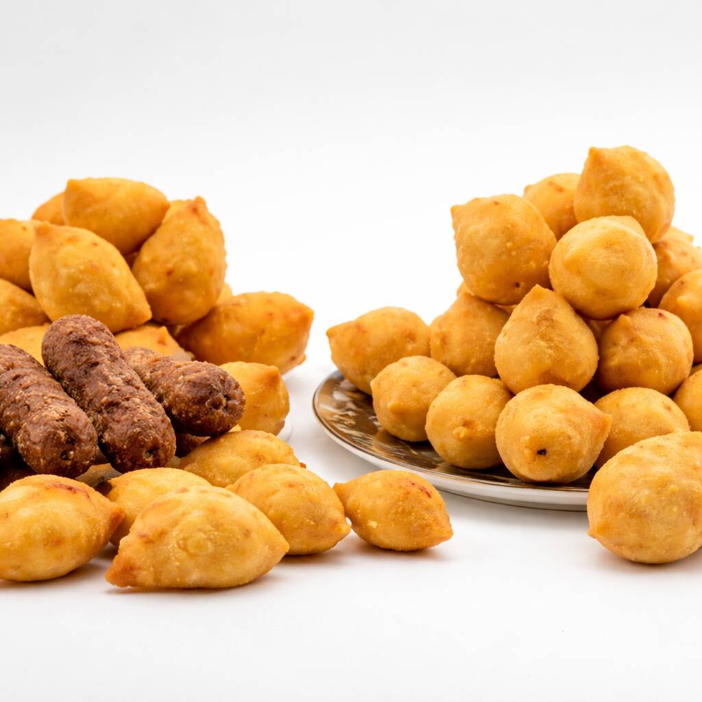 Porção com 50 mini quibes sequinhos por fora e macios por dentro. Uma opção deliciosa e prática para compartilhar em família ou festas.