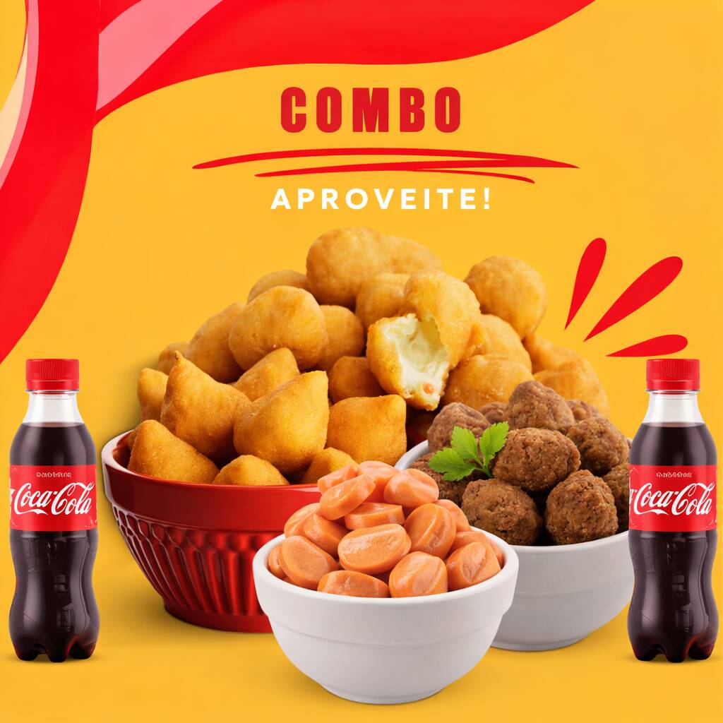 Combo Festa | 100 Mini Salgados Sortidos + 1 Refrigerante 2l