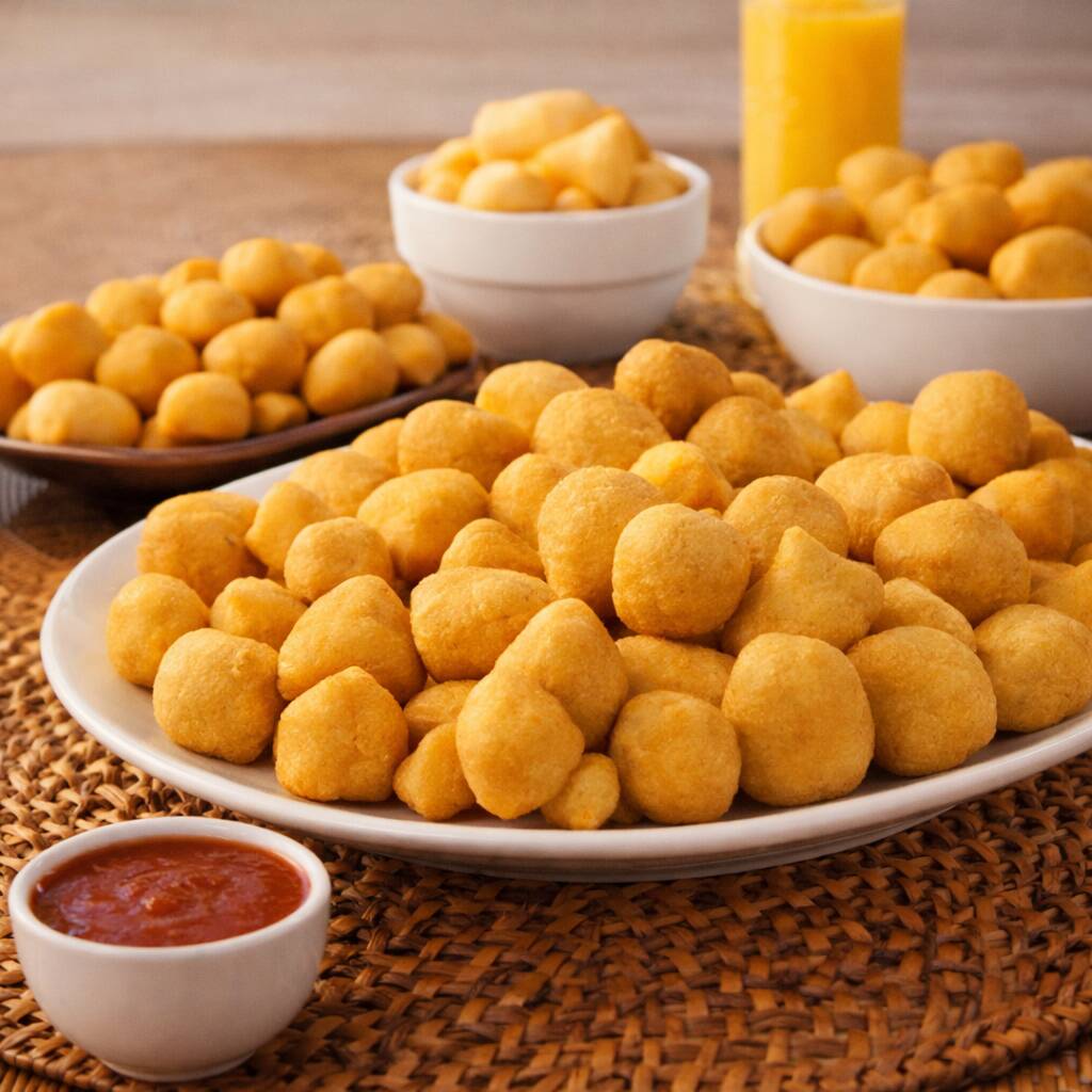 100 mini coxinhas de frango, crocantes por fora e macias por dentro. Uma opção irresistível e prática para festas e encontros em família.