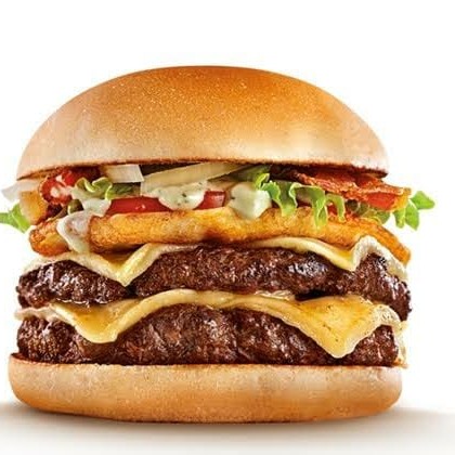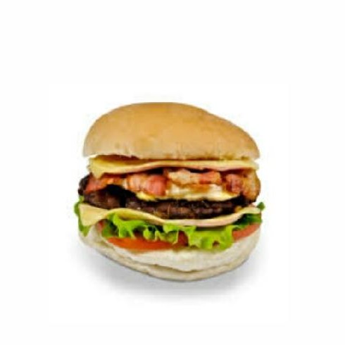 Pão + 2 Hambúrgueres + queijo + tomate + alface + bacon +ovo +cheddar +cebola + molho da casa