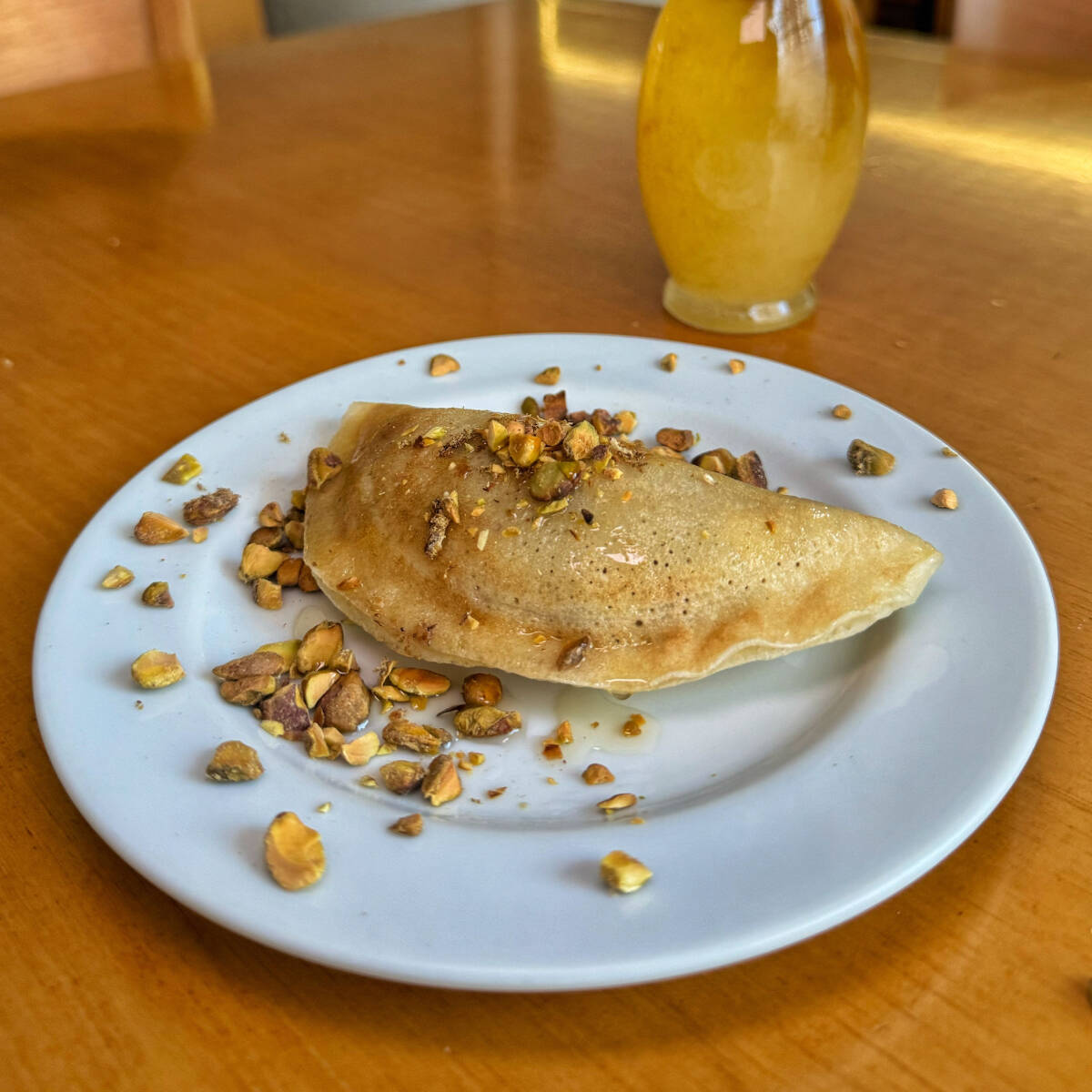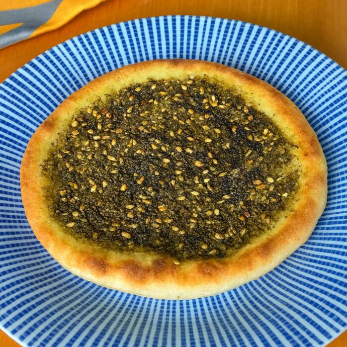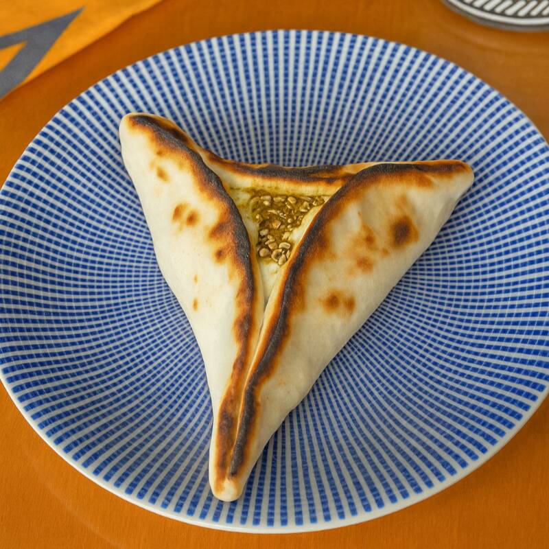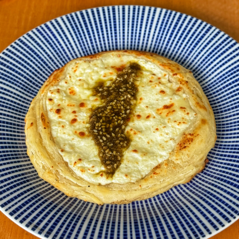 Deliciosa esfiha aberta de Zathar. Massa leve e recheio direto do Oriente Médio.