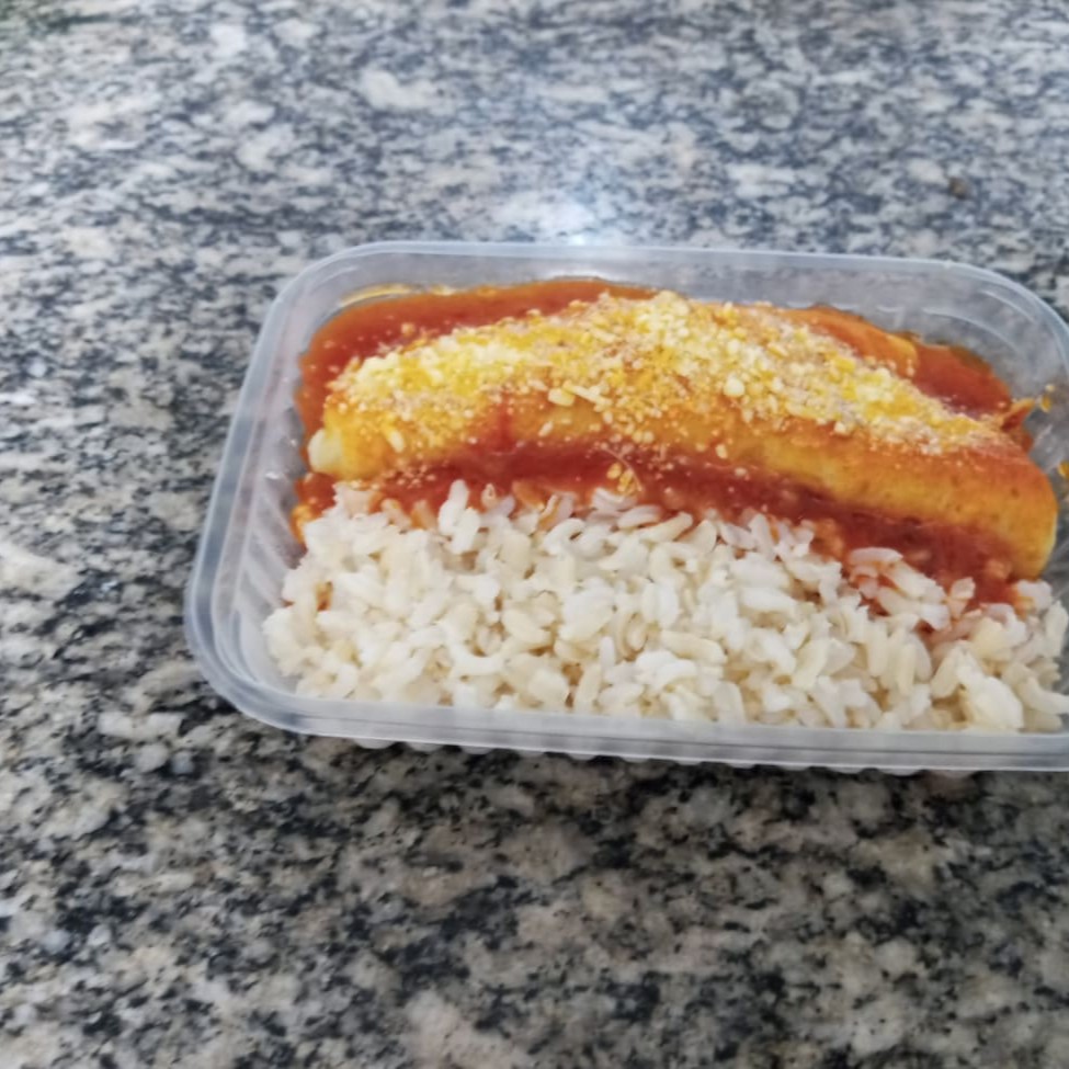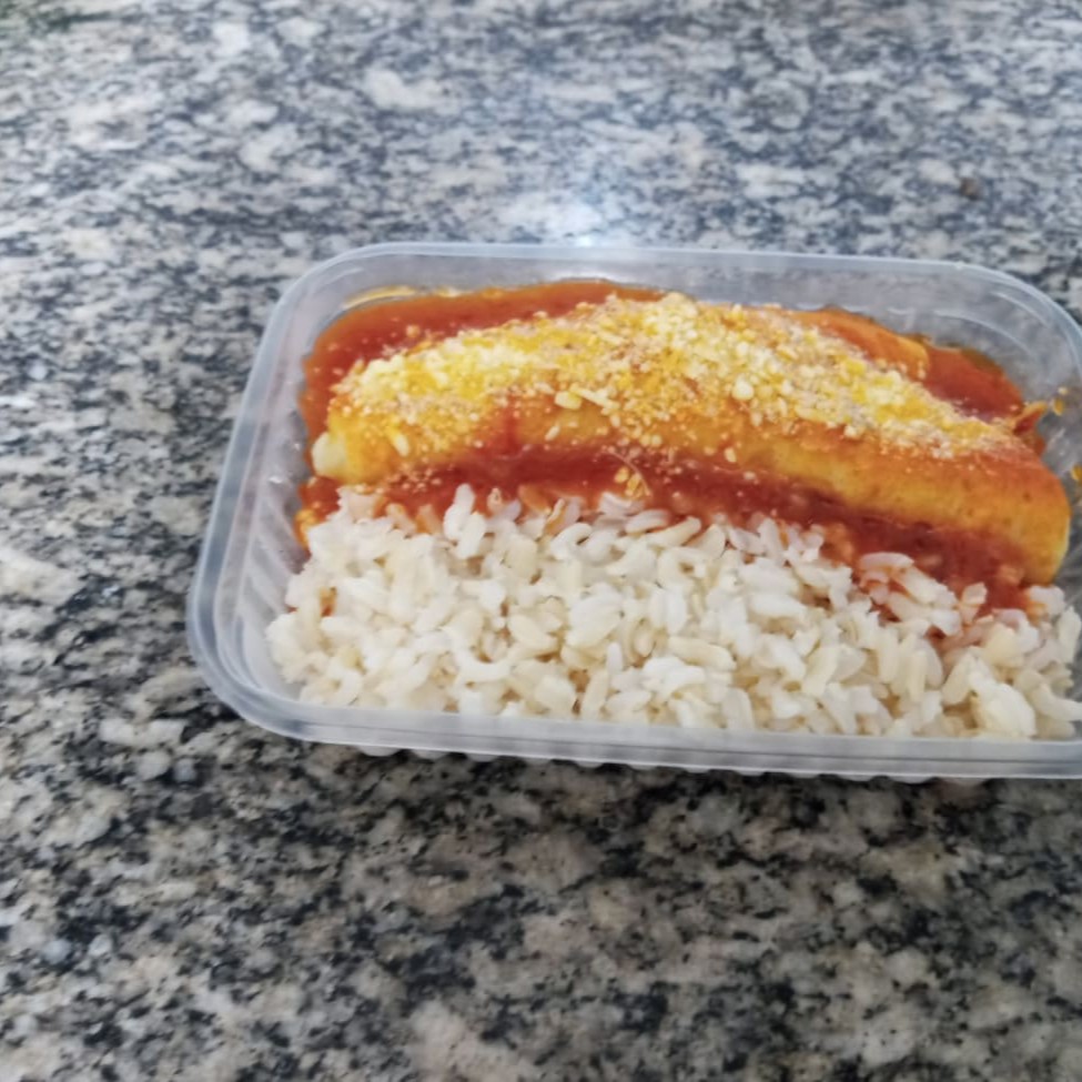 Arroz integral com panqueca de carne (patinho) - embalagem própria para freezer e microondas - peso: 300g - produto congelado - Entrega em até 48 horas