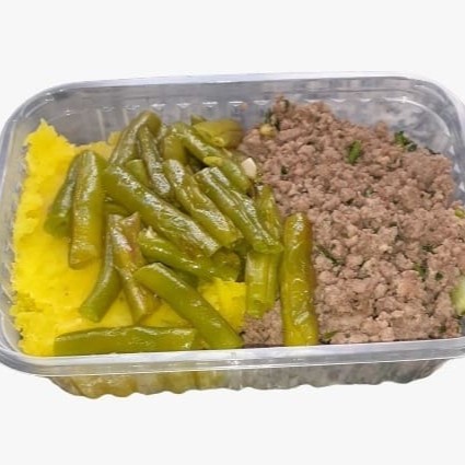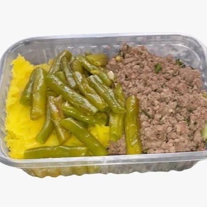 Carne moída de patinho com purê de mandioquinha e vagem, embalagem própria pra freezer e microondas - peso: 300g - produto congelado - Entrega em até 48 horas