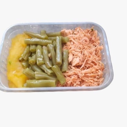 Frango desfiado com purê mandioquinha e vagem, embalagem própria para freezer e microondas - peso: 200g - produto congelado - Entrega em até 48 horas