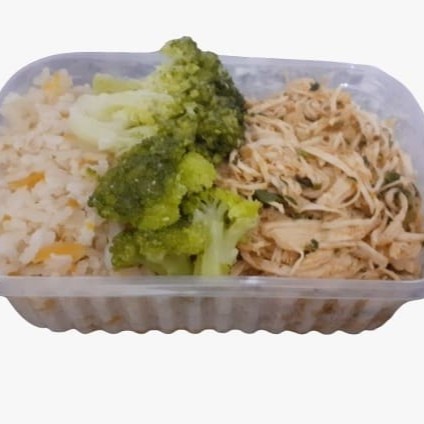 Arroz integral com cenoura ralada, frango desfiado e brócolis - embalagem própria para freezer e microondas - peso: 200g - produto congelado - Entrega em até 48 horas