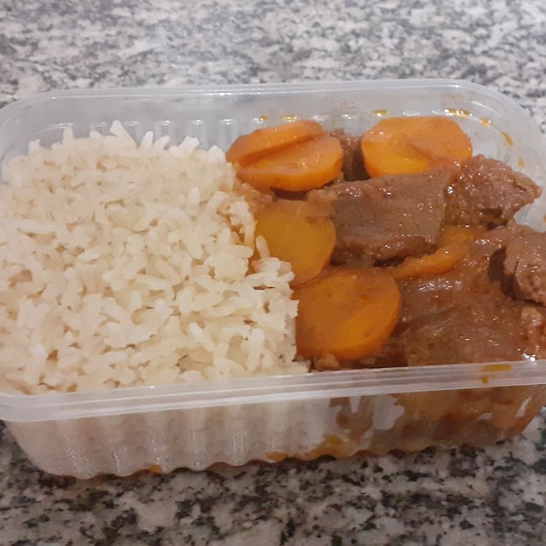 Arroz integral com carne panela (miolo de acém) e cenoura, embalagem própria para freezer e microondas - peso: 400g - produto congelado - Entrega em até 48 horas