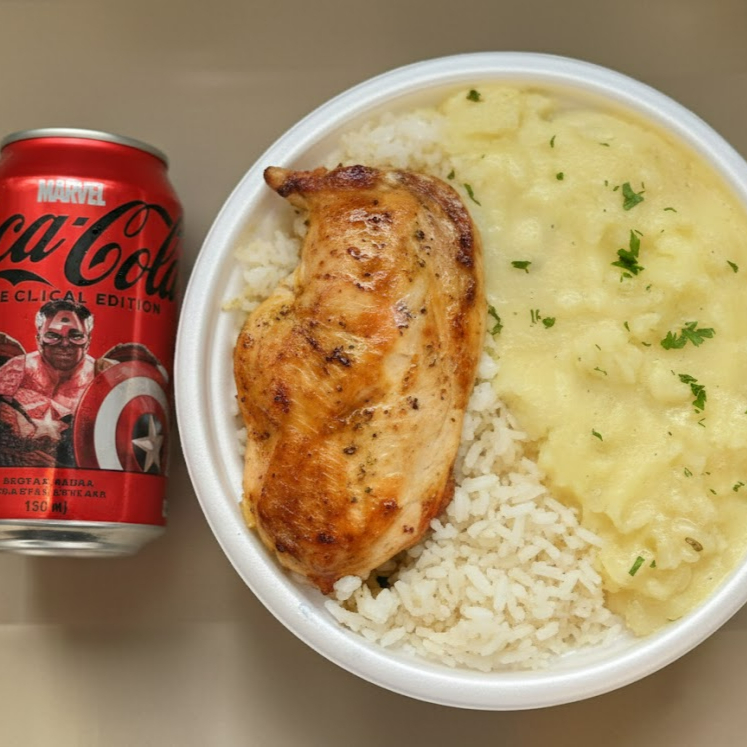 Combo Frango Grelhado Com Arroz, Feijão E Purê + Coca Cola 200ml