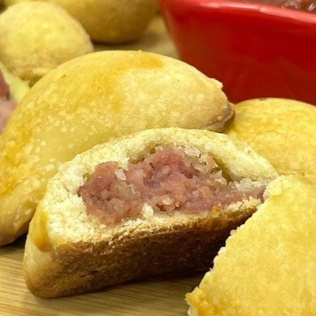 Mini esfihas recheadas com calabresa moída e temperada, assadas na hora para garantir sabor e maciez. Uma opção deliciosa para quem ama um salgado bem feito e quentinho!