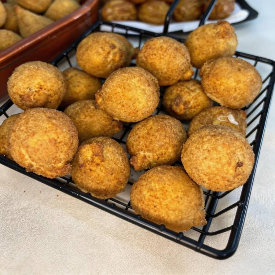 10 Mini Bolinhas De Queijo Massa De Batata, Frita