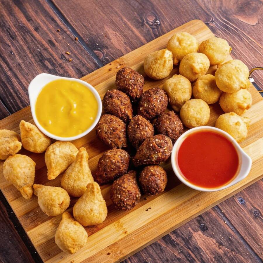 Mini kibes crocantes por fora e macios por dentro, fritos na hora para garantir frescor e sabor. Uma opção deliciosa para acompanhar seu combo de salgados!