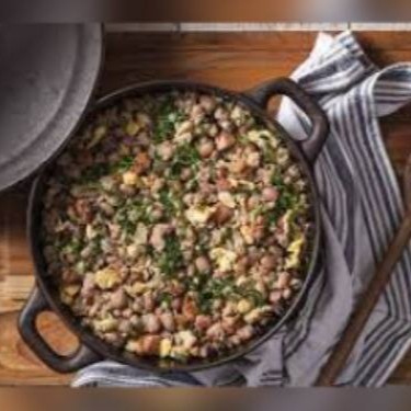 Costela, frango e linguiça arroz, feijão, macarrão e fritas