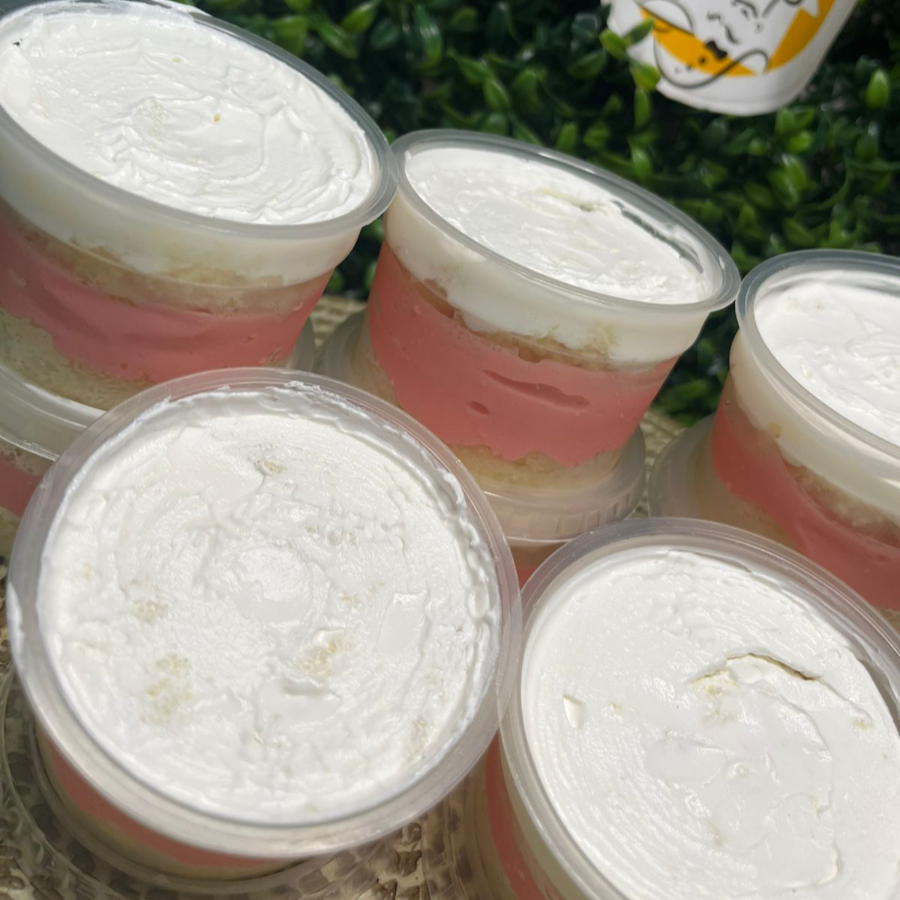 Bolo de Massa Branca com Mousse de Morango no Pote Massa branca macia com recheio de mousse de morango leve e cremoso, finalizado com uma cobertura delicada. Uma sobremesa suave, refrescante e deliciosa! Porção aproximada de 100g.
