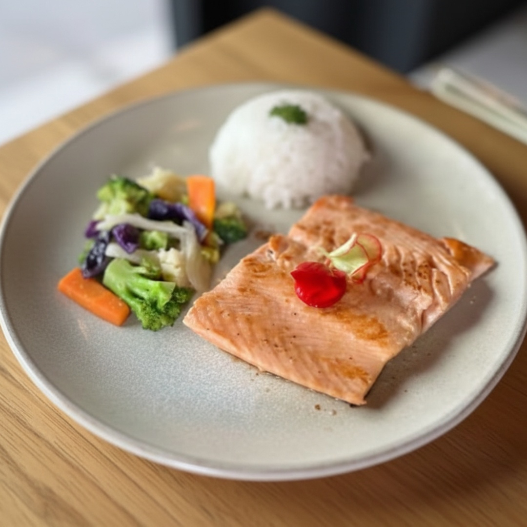 Salmão Grelhado Com Legumes E Gohan