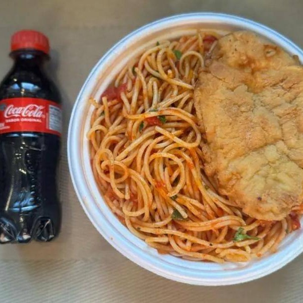 Bife contra filé, acompanha arroz , feijão , macarrão, farofa .