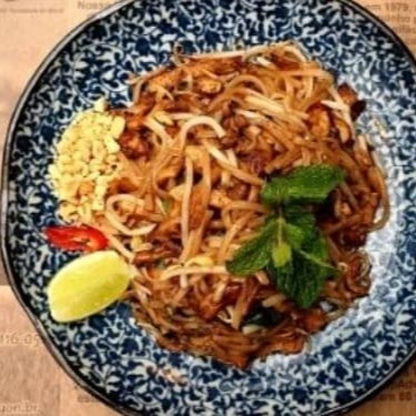 Talharim de arroz com tiras de frango, bolinho de frango, cebolinha, em caldo de frango. Acompanha mix de verduras, limão e molho especial. É um macarrão de arroz super saboroso, com o melhor tempero da culinária vietnamita.