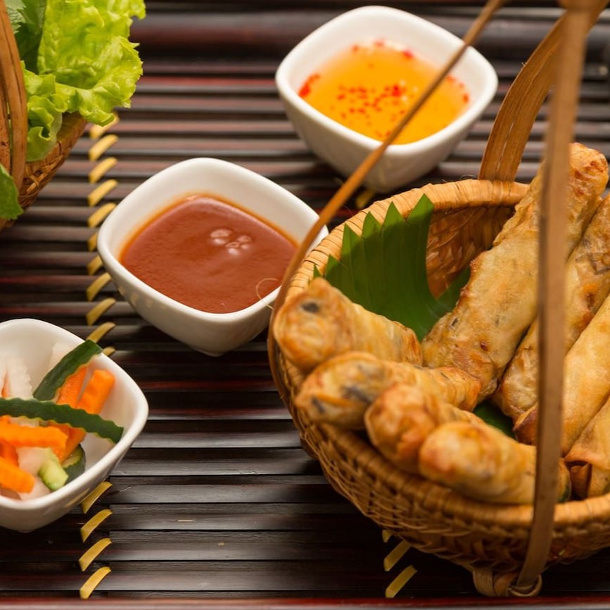 Rolinho Primavera oriental vietnamita, sabor vegetariano. Acompanha molho especial, pepino, alface e hortelã. A porção vem com 8 unidades. É uma delícia sem fim. É o verdadeiro e autêntico rolinho primavera oriental, o Original. É o melhor rolinho de Sp, super saboroso. Não é comida japonesa, nem chinesa, nem tailandesa, mas sim comida vietnamita. Sabores do Vietnã: É fácil virar fã.